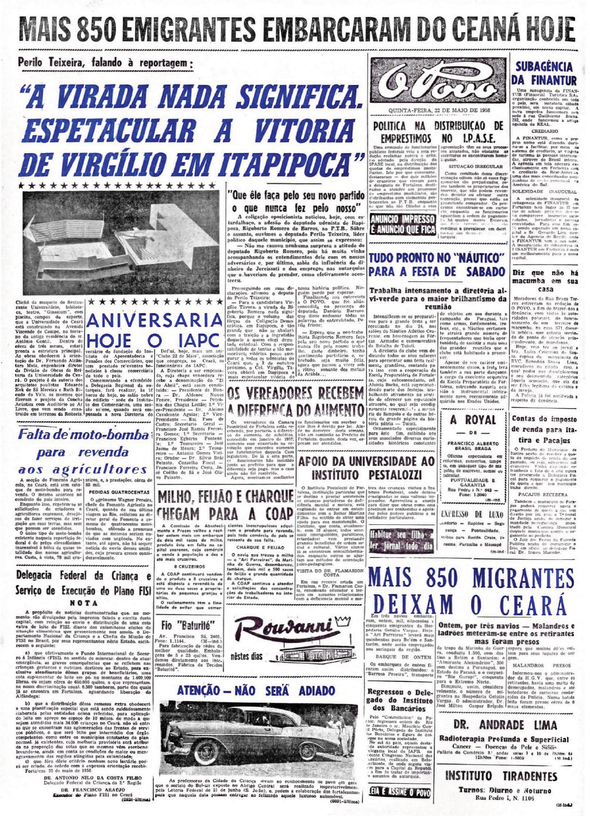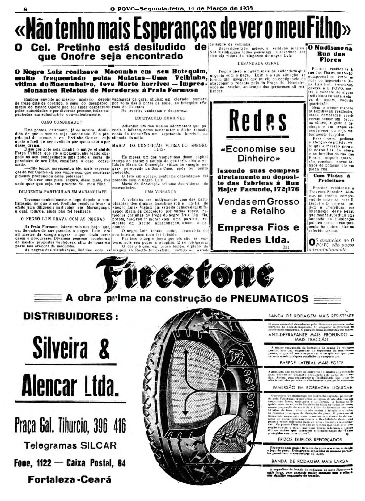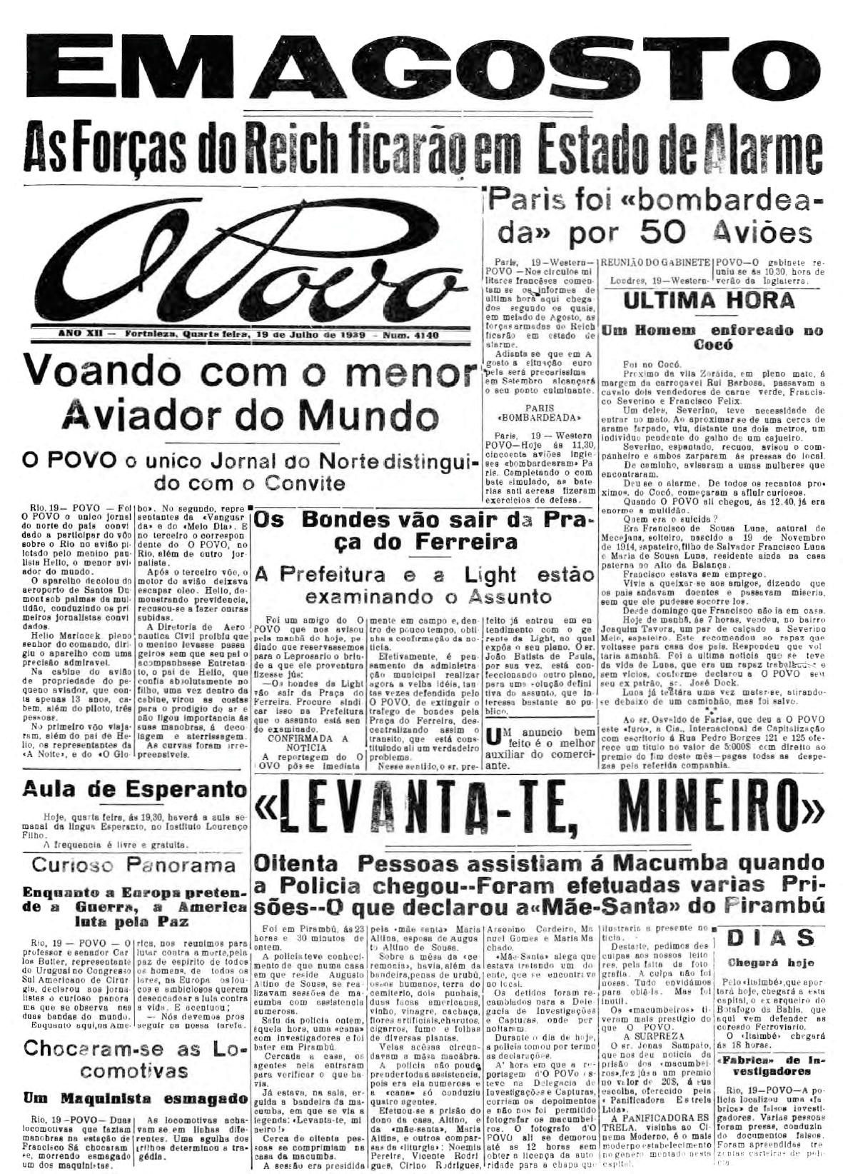 Onze pessoas foram presas na casa de dona Maria de Holanda Alvez quando estava sendo realizada uma cerimônia de cura de uma amiga. A polícia recebeu a denúncia de um vizinho e foi ao local. Todos foram presos e conduzidos à delegacia junto com os pertences e material associados ao ritual. No texto, o repórter associa a religião a uma "altivez pagã, filha da ignorância e do desespero".